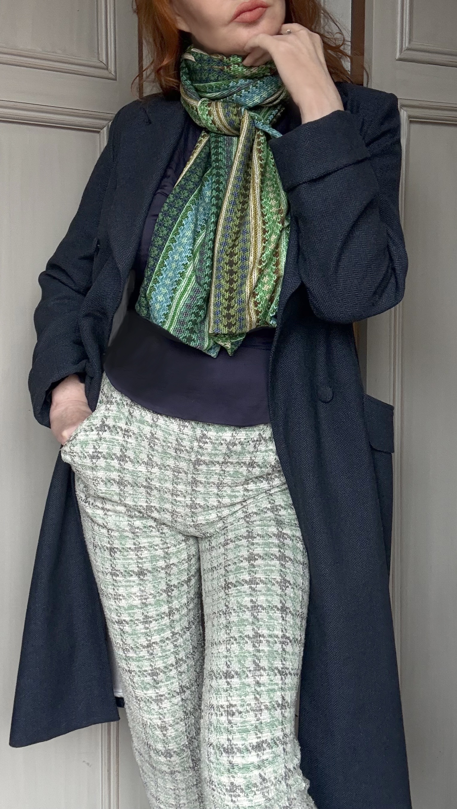 Fabric: 100% shetland wool, herrinbone woven, tweed style.